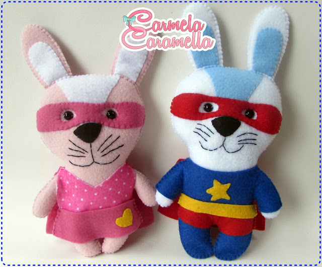 Aula 3 do nosso projeto FELTRANDO SEM MEDO , aproveitando o clima de pascoa fizemos um casal de super coelhos que podem compor guirlandas , enfeites e ate mesmo acompanharem caixas de bombons , os moldes estão disponíveis GRATUITAMENTE aqui .