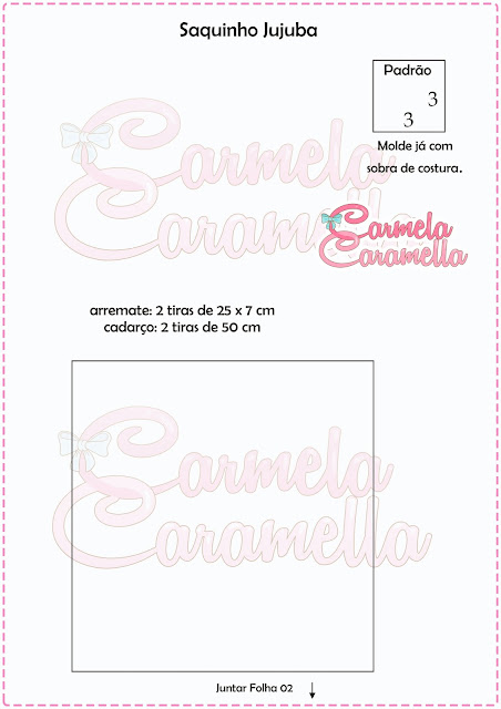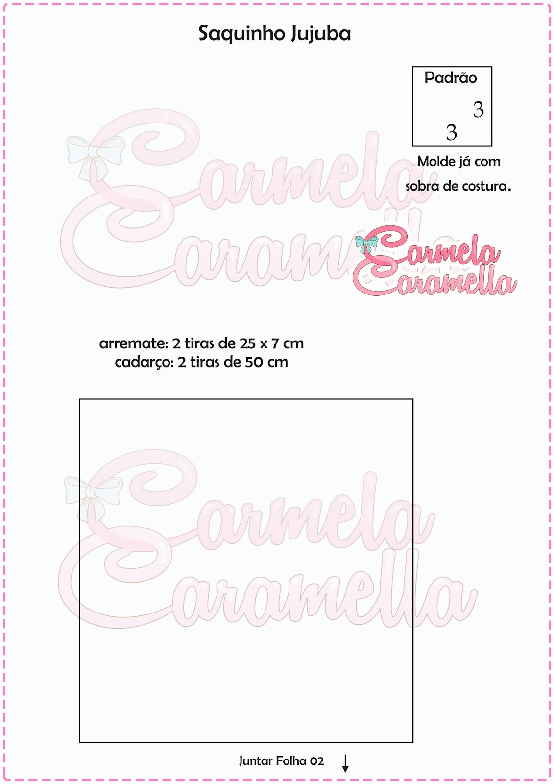MOLDE - SACOLINHA JUJUBA - SAQUINHO DE TECIDO